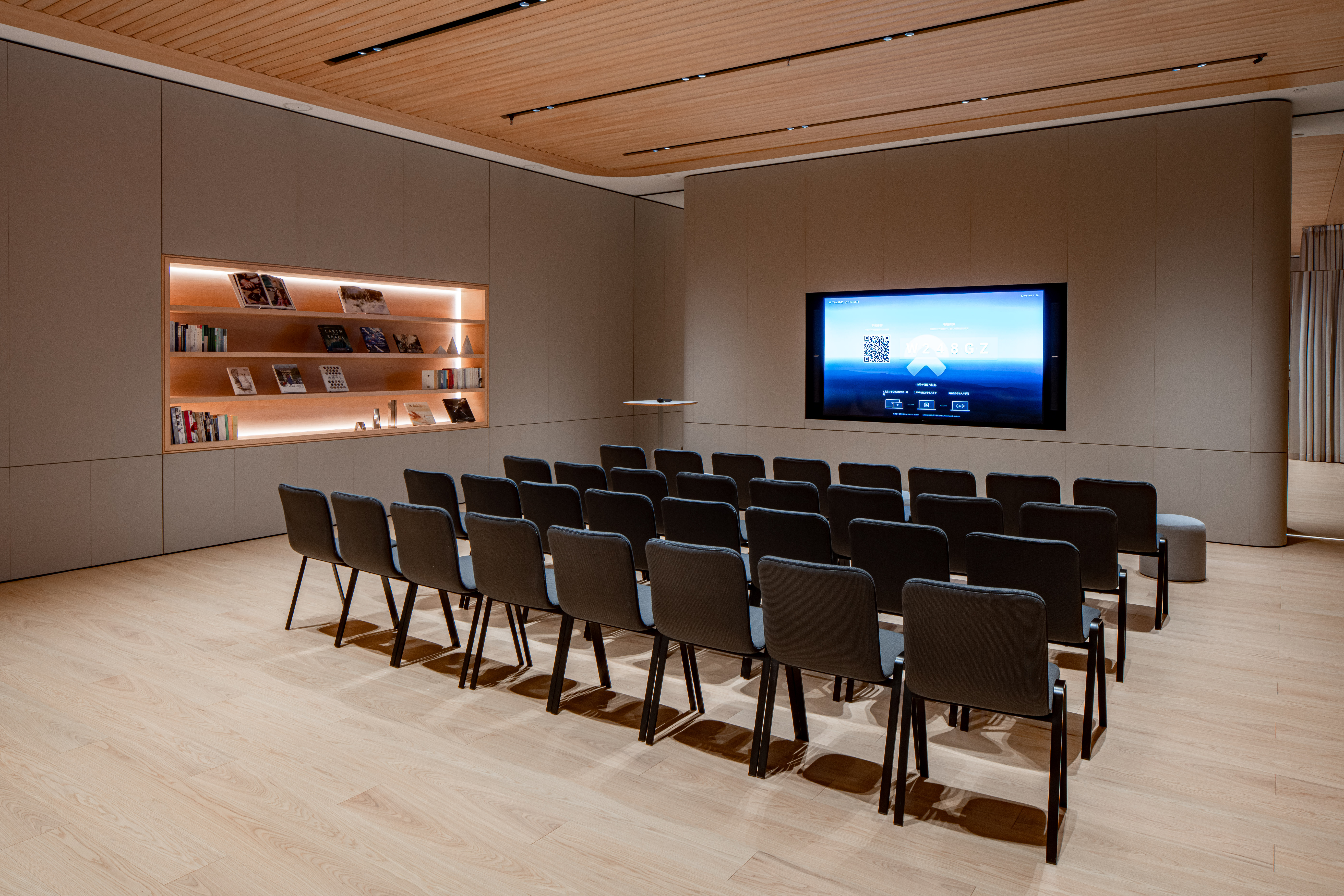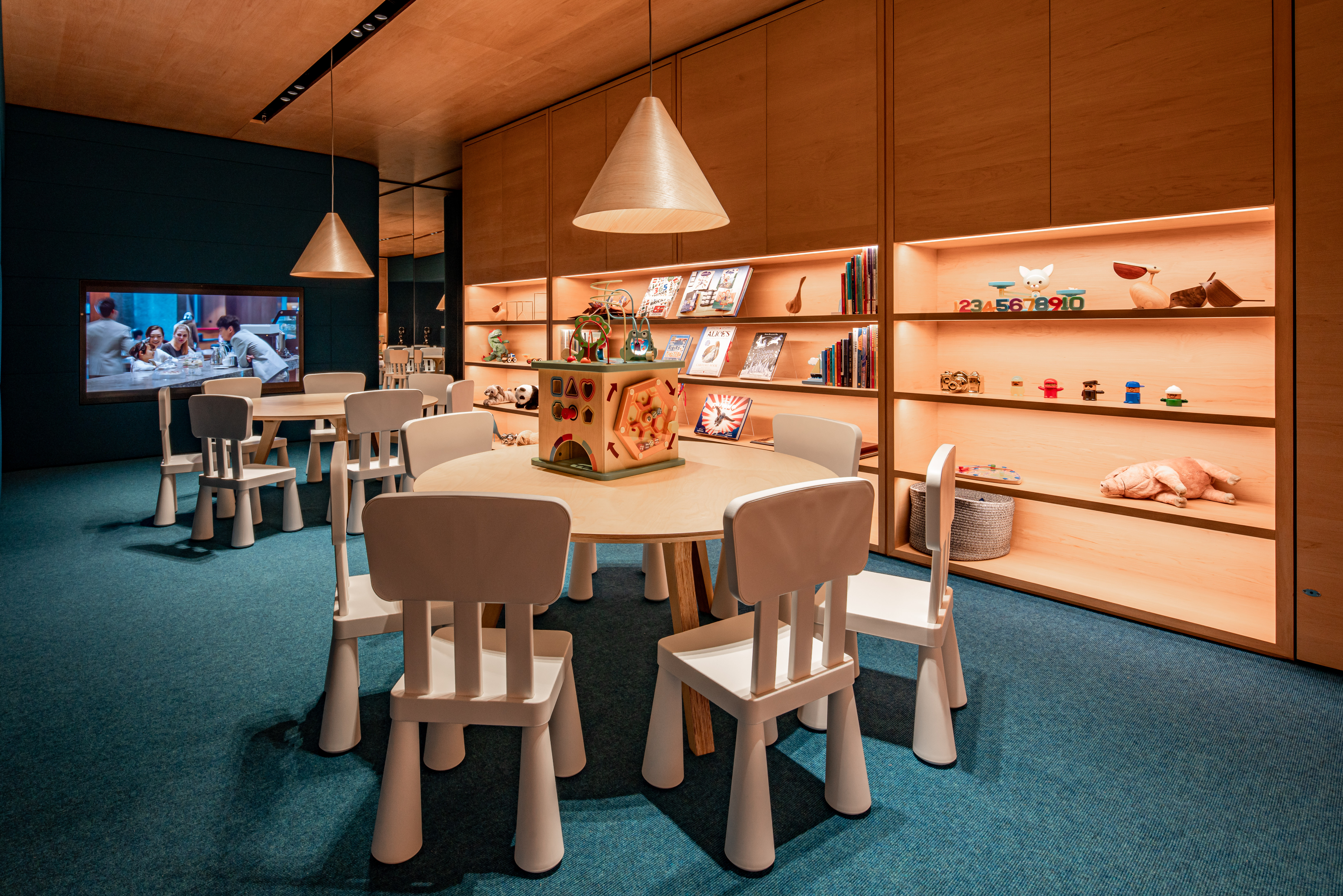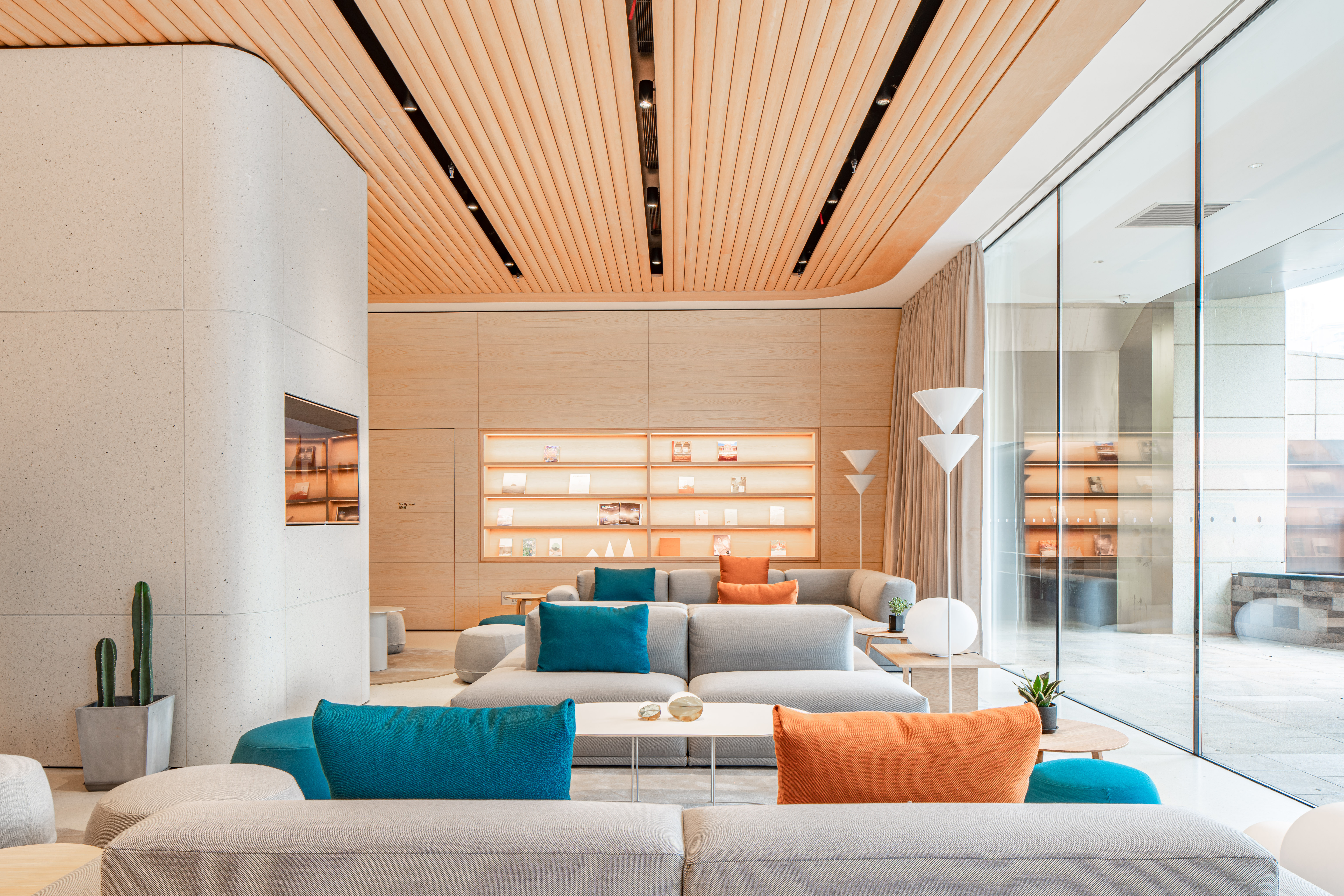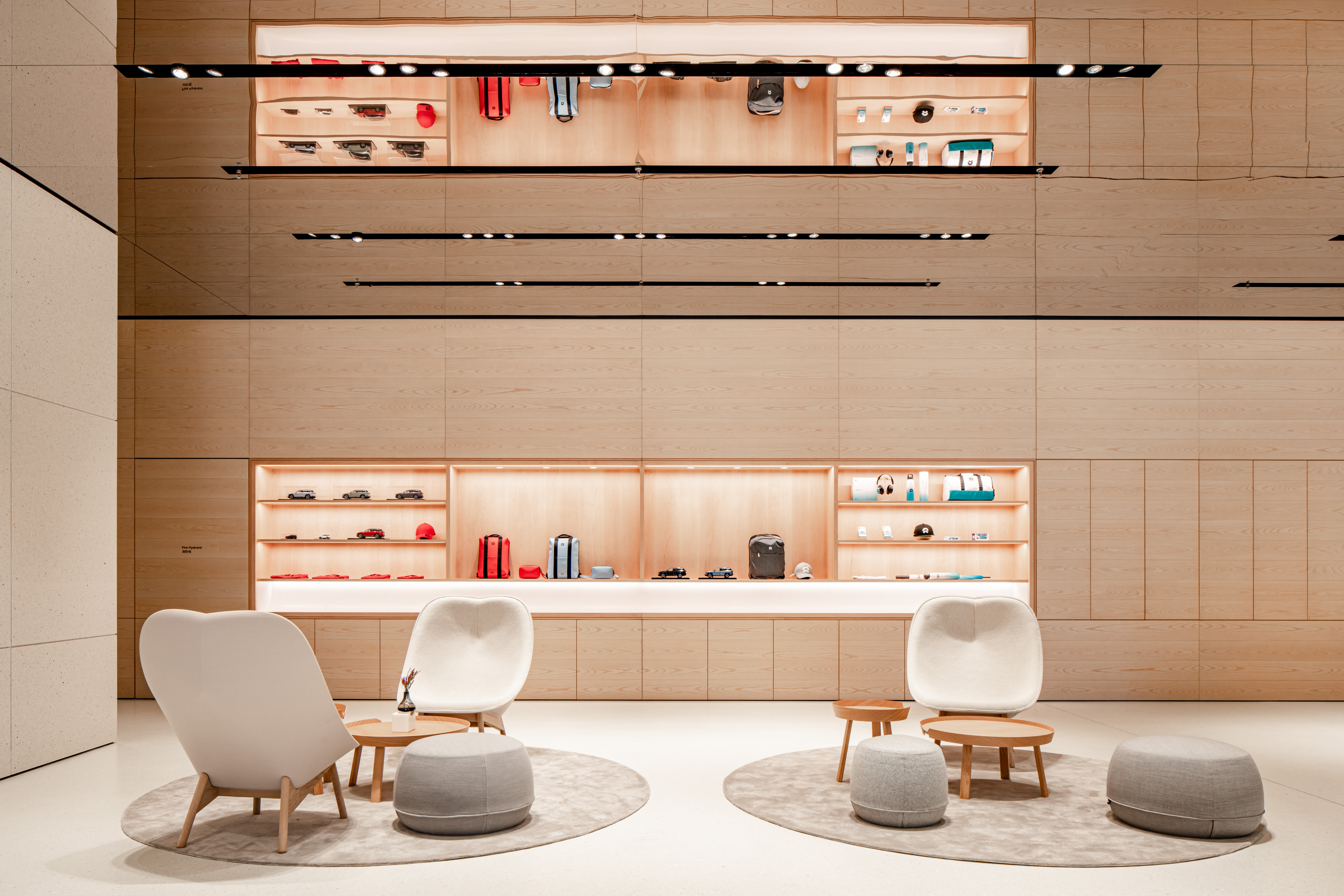 本案室内设计还大量运用了原木色调的装饰板,意在打造一个温暖、亲切的亲民购物场所,照明设计则利用隐藏的LED柔性灯带对原木装饰板洗亮,突出这一设计元素。