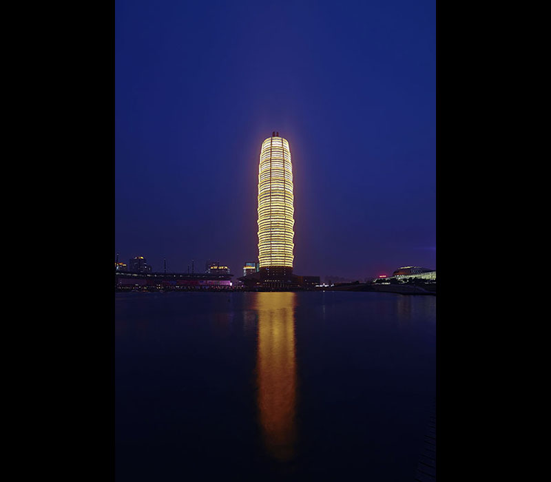 2006年设计这个项目的时候,最初并没有一个设定好的设计计划,只是考虑了如何能更好地进行采光,如何给楼宇提供更好的外立面照明。通过调查和研究,做了一个简单的超高层建筑照明的草图,考虑的第一要素就是采光。这是一个非常有趣和具有挑战性的问题。通过与SOM的合作,并经过反复的实验与探索,有效的解决了许多问题,使建筑的自然光和人造光达到了较好的融合。